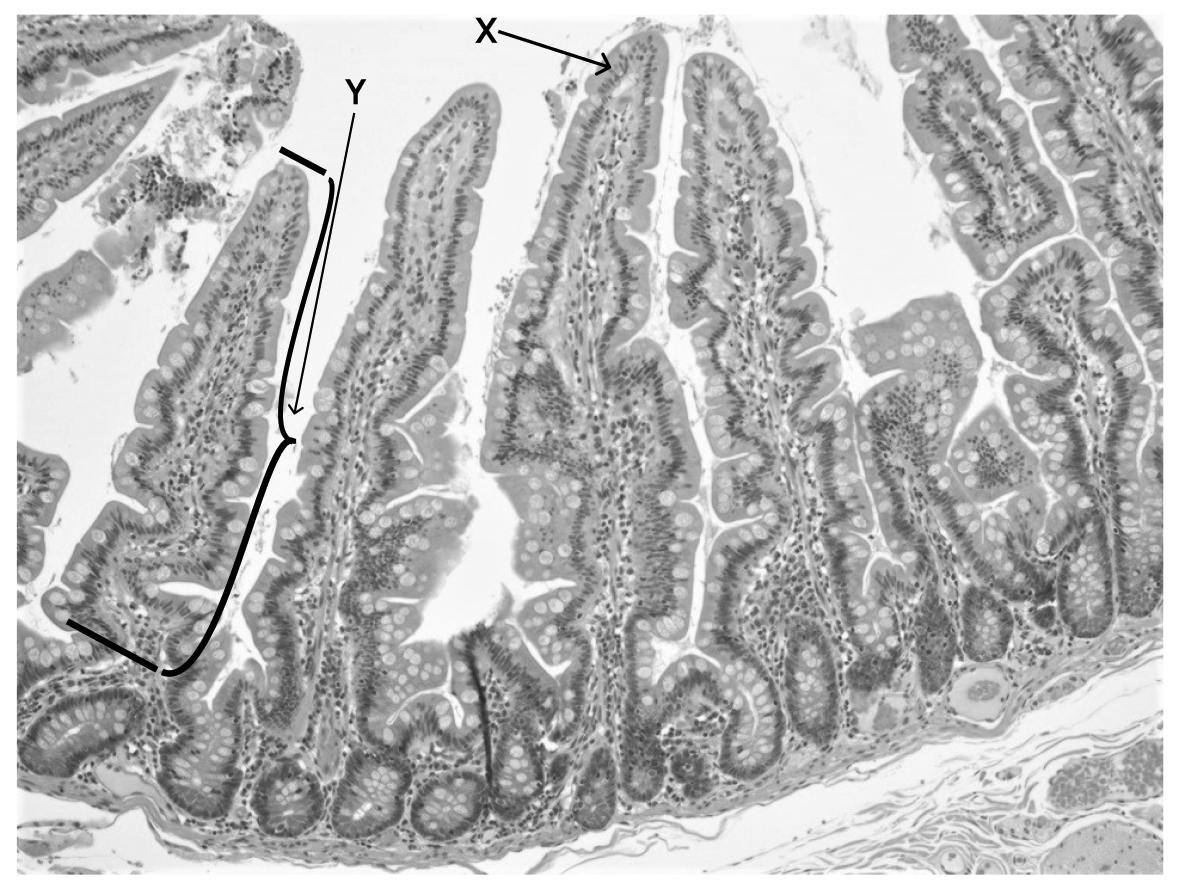 The actual length of the structure labelled Y is 0.8 mm between the two black lines. Calculate the magnification of the micrograph. Working should be shown.