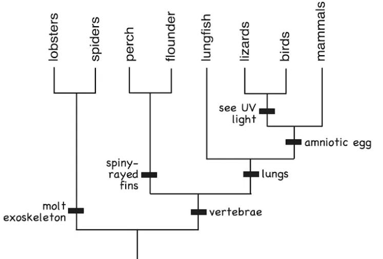 Explain why molecular (gene or protein sequence) data is often preferred over morphological traits when building phylogenetic trees like this.