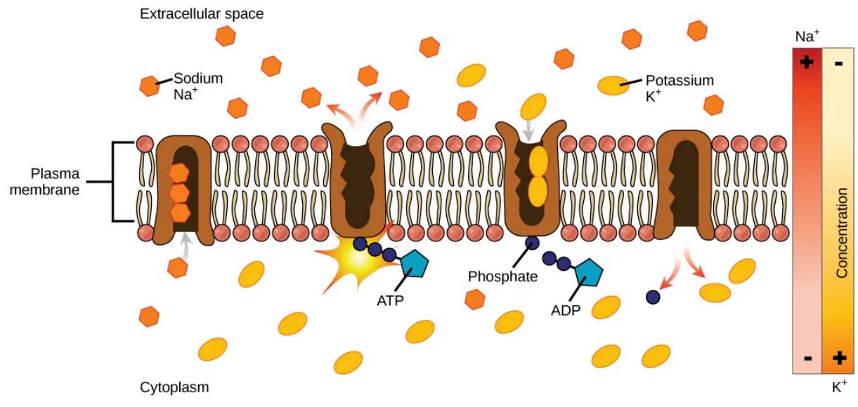 Which of the following best describes how the process shown in the image contributes to maintaining the resting membrane potential of a neuron?