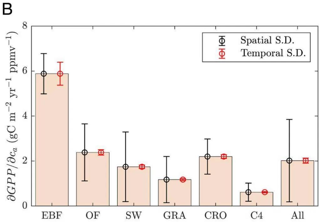 Image B shows this GPP response across major biomes.