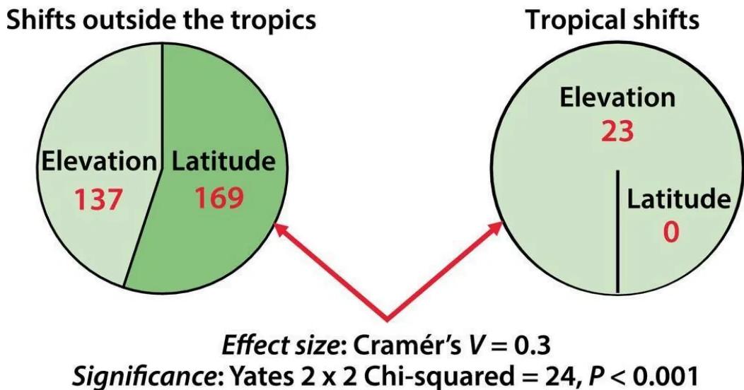 Figure b summarizes recorded elevational and latitudinal shifts inside and outside the tropics.