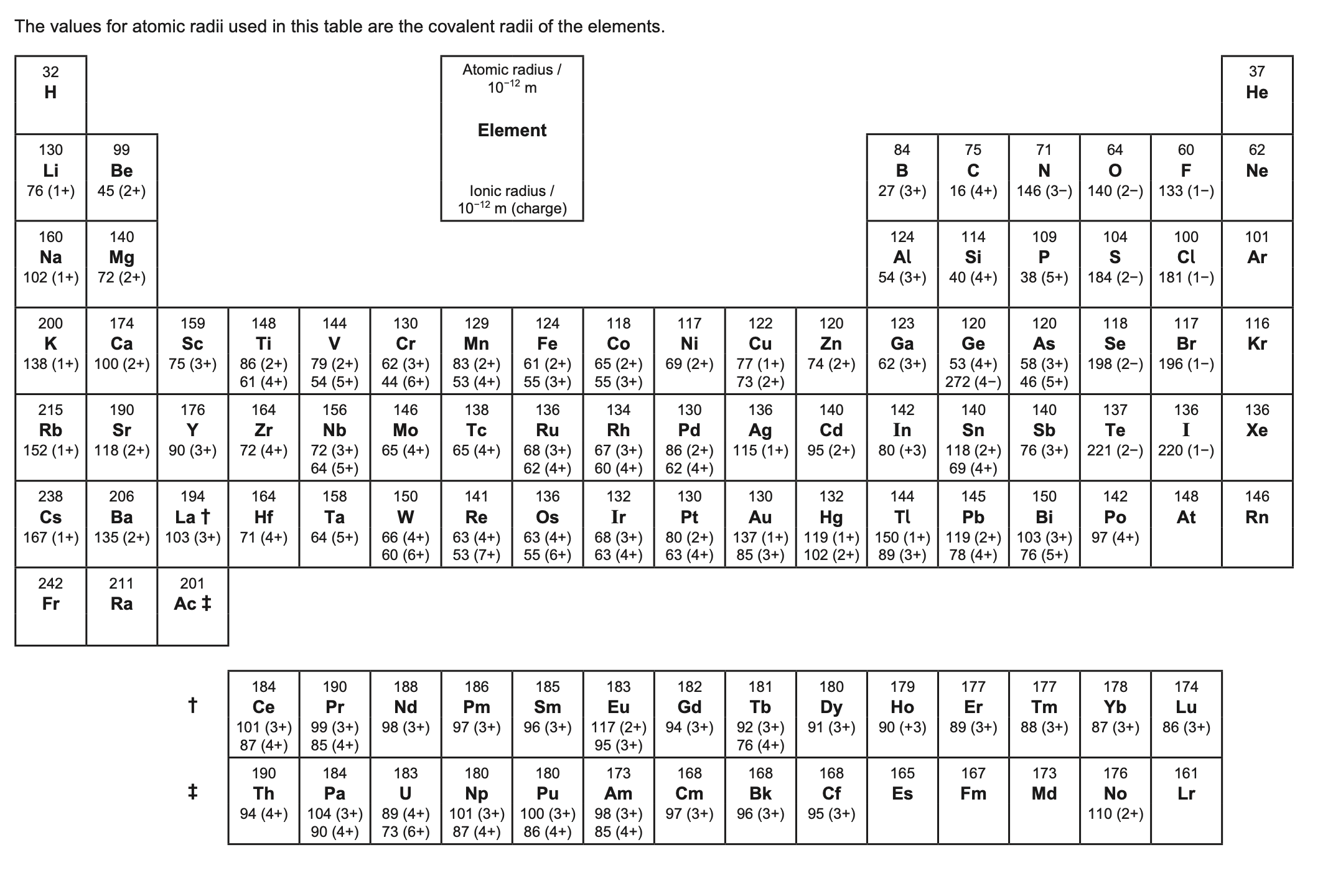 10. Atomic and ionic radii of the elements