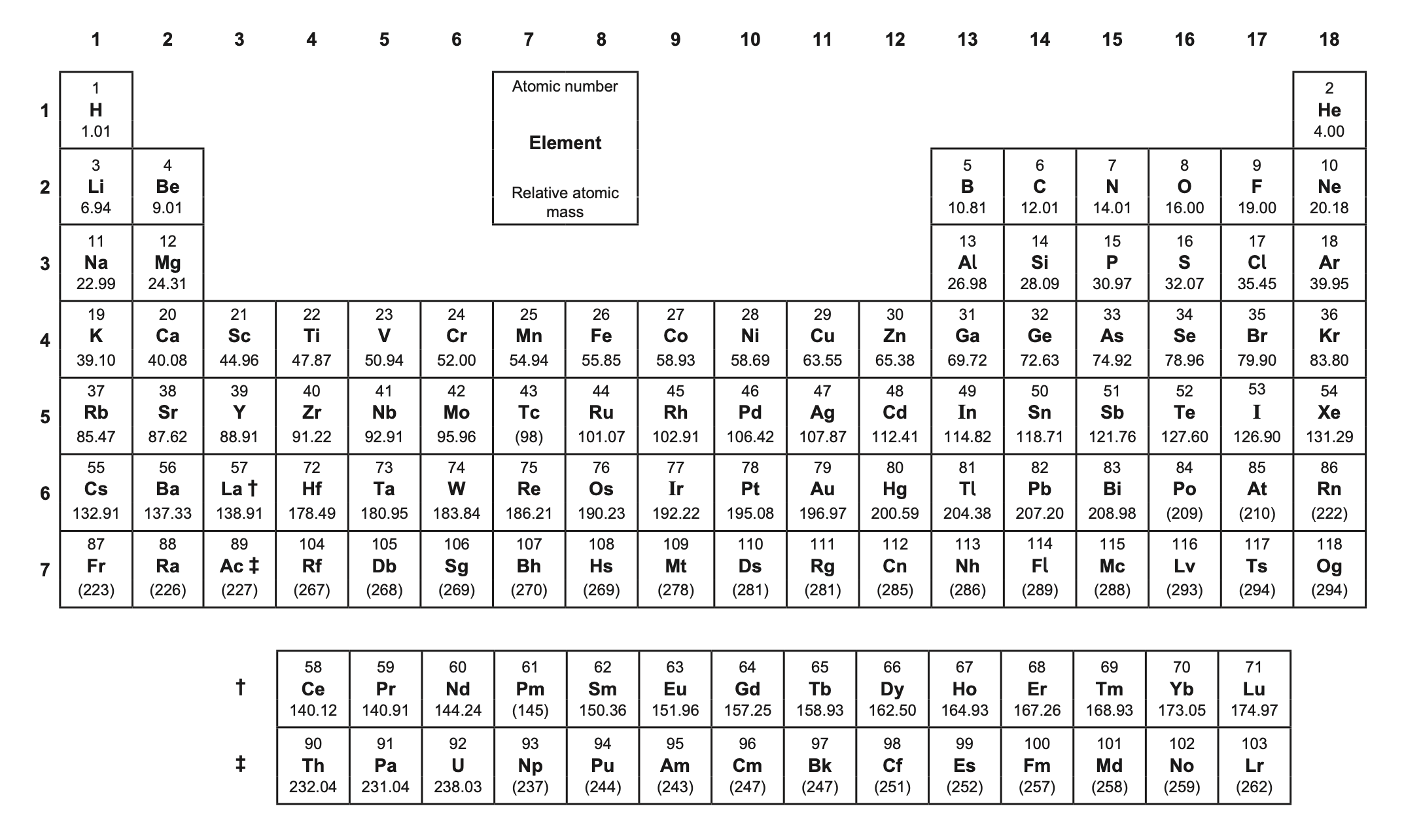 | Element | Symbol | Atomic number |