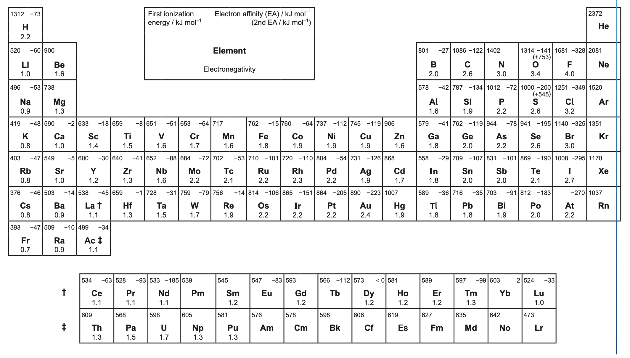 9. First ionization energy, electron affinity and electronegativity of the elements