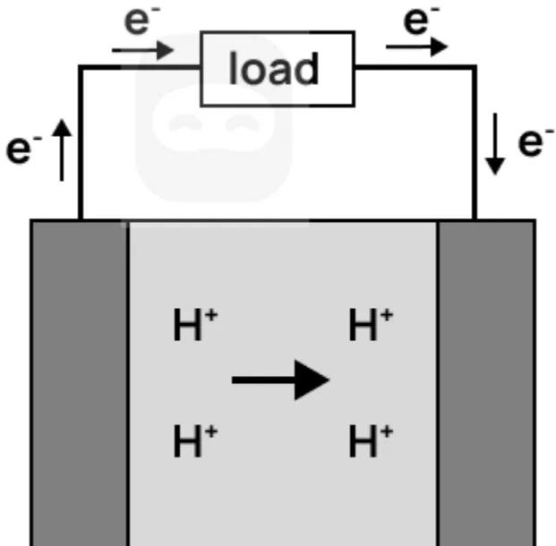 A diagram of a hydrogen fuel cell is shown.