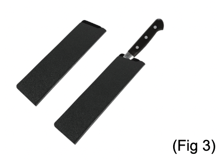 Identify one mechanical property of the material used in Figure 1 that makes it suitable for a knife blade.