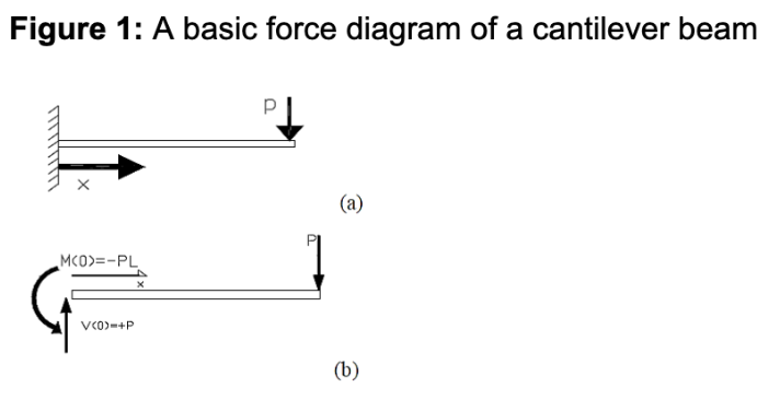 i.) Refer to Figure 1. Describe the direction and location of the key forces acting on the cantilever beam.