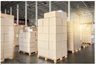 Figure 3 shows a warehouse storing large quantities of packaged food containers before being shipped to retailers.