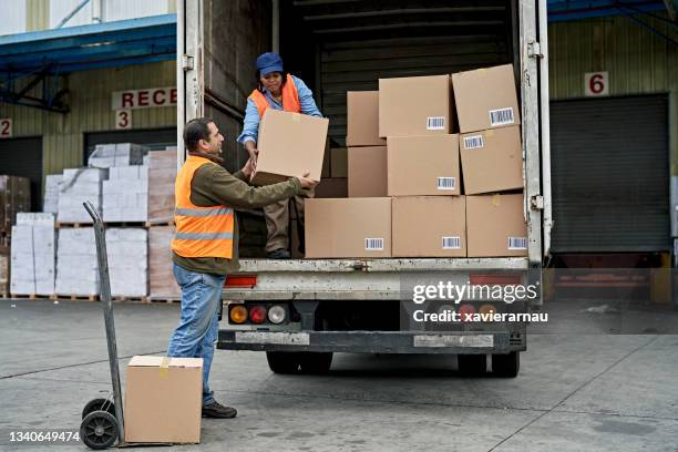Figure 1 shows a delivery truck being loaded with cardboard shipping boxes.