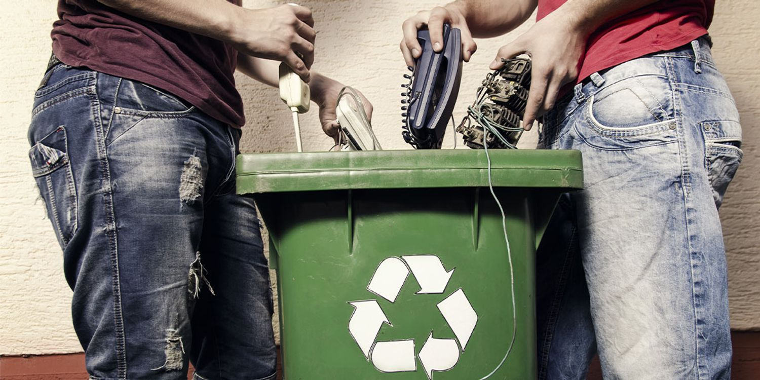 Figure 2 shows people throwing an old electric items into a household waste bin.