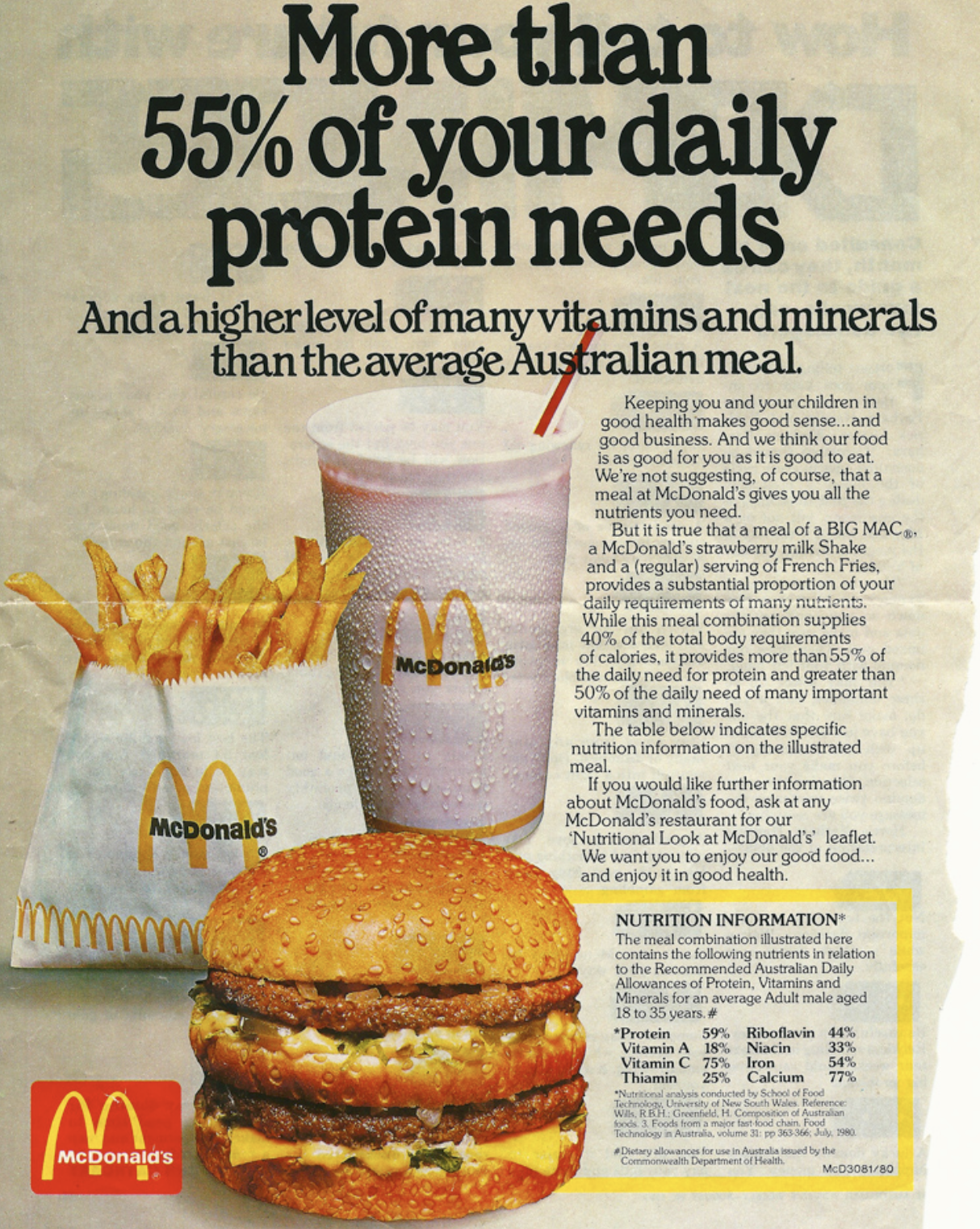 How does this advertisement use language, layout, and nutritional claims to persuade the audience that McDonald's food can be part of a healthy diet?