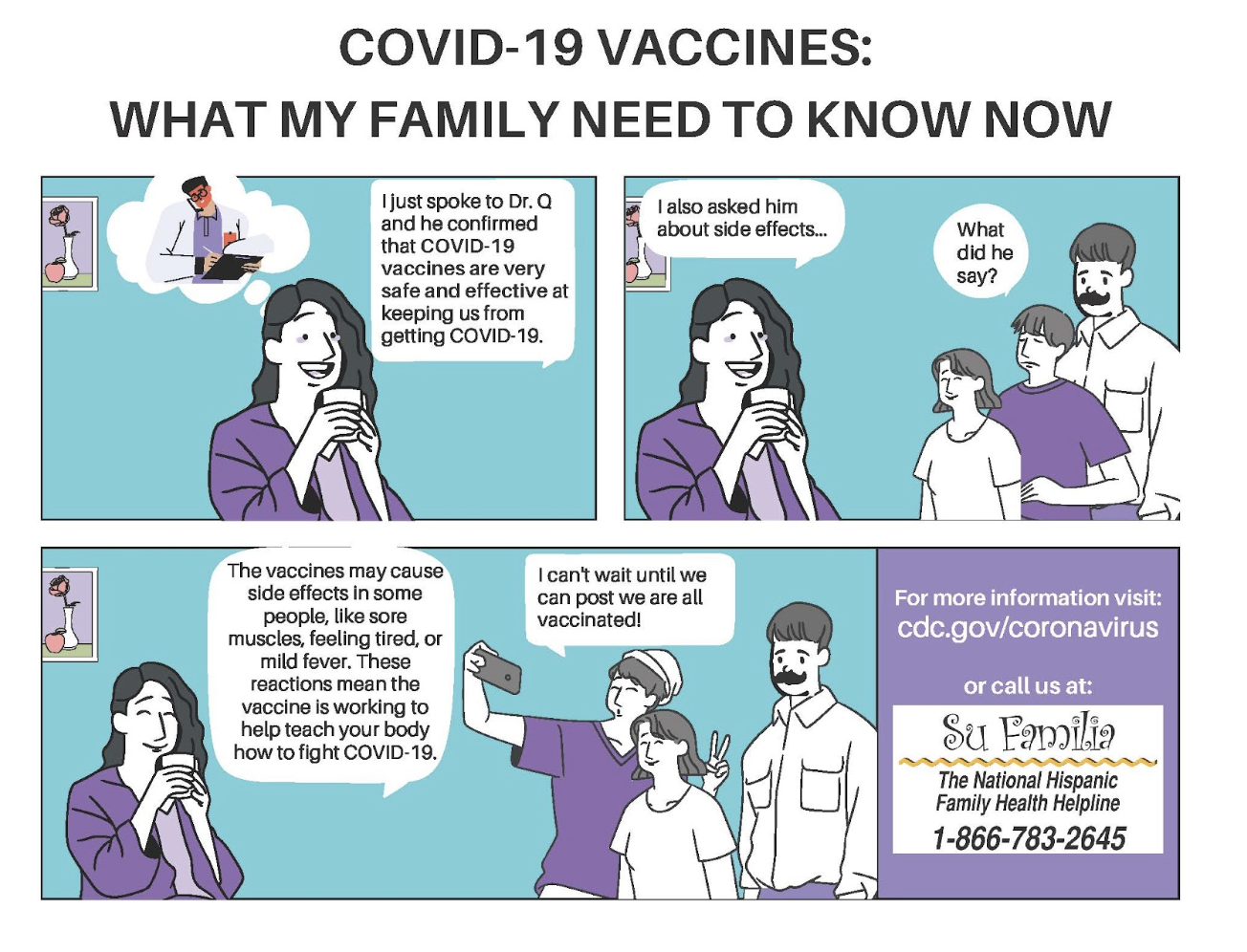 How does the comic use visual and verbal features to inform and reassure the public?