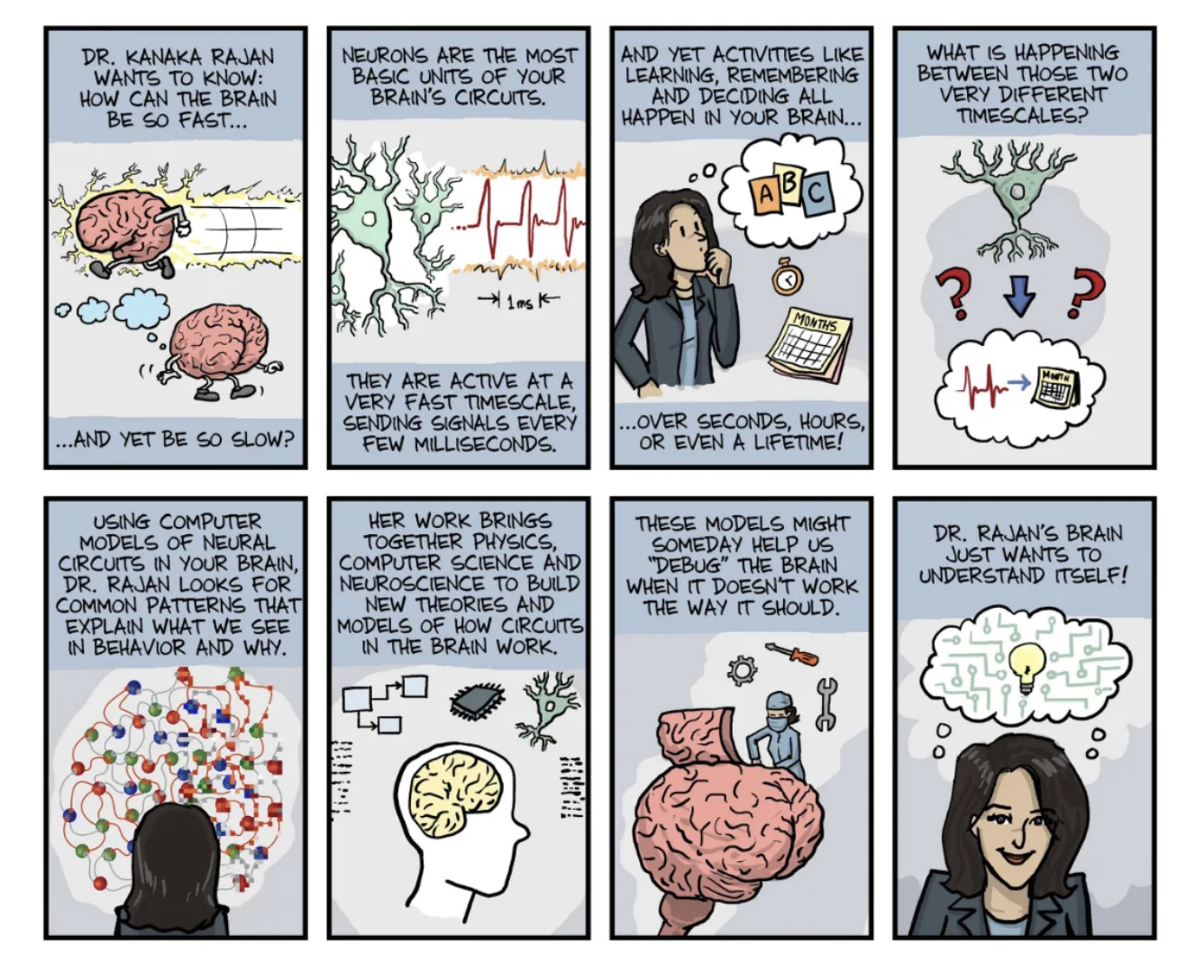 How does the comic use visual and written features to explain complex scientific ideas in an accessible way?
