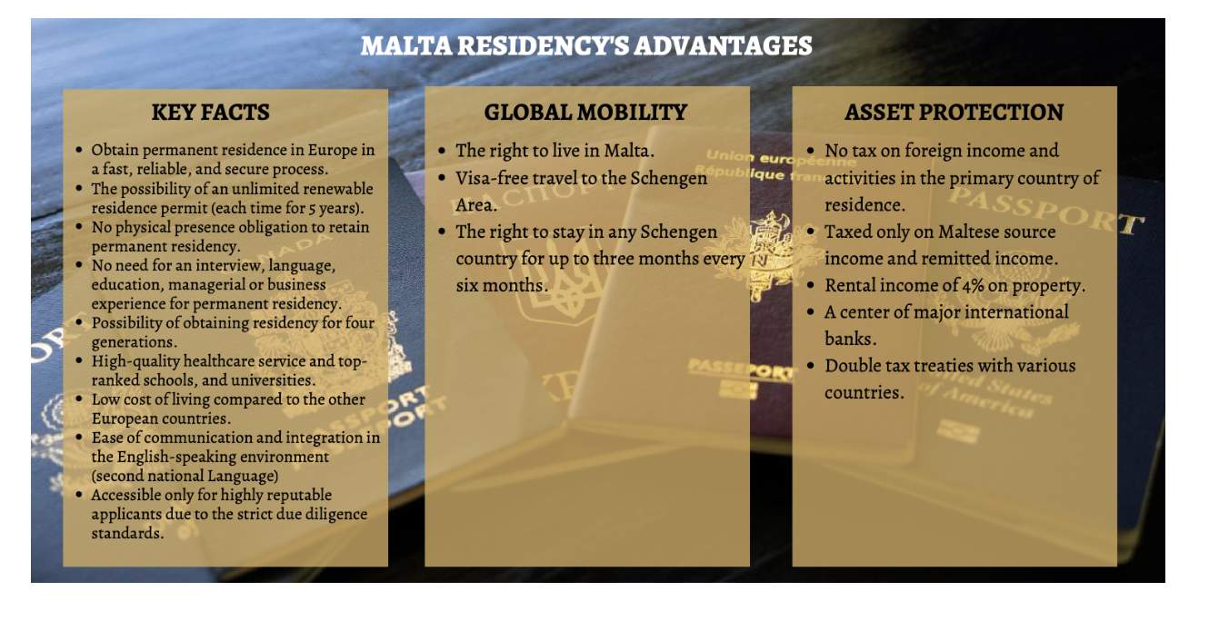 How do the visual and textual features shape the reader’s understanding and perception of Malta’s residency programme?