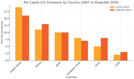 Figure 1: CO2 emissions of select countries in 2007 and 2030 (Projected)