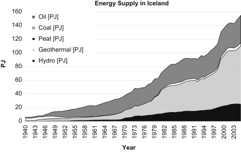 Figure 2: Graph showing primary energy consumption in Iceland 1940–2008