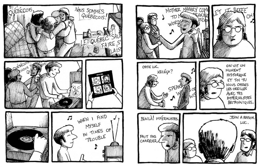 Comment cette bande dessinée illustre-t-elle une réflexion sur la culture et l’influence politique ? Justifiez votre réponse avec des éléments visuels et textuels.