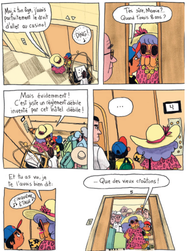 Comment la mise en page en plusieurs cases influence-t-elle la progression de l’histoire et l’effet comique ?