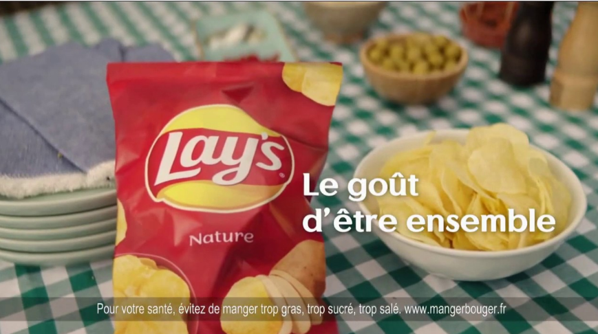 Analysez la mise en scène du paquet de chips et du cadre convivial. Quel message visuel cette composition transmet-elle ?