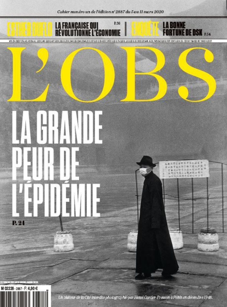Analysez la signification des masques chirurgicaux placés en croix sur la couverture. Quel message visuel cela transmet-il ?