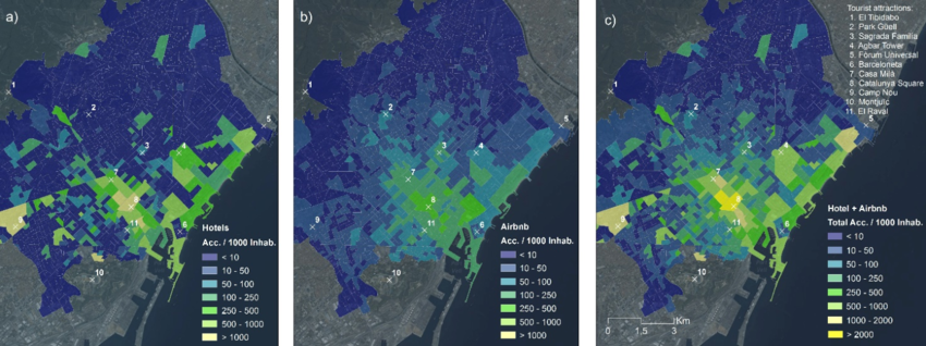 Source: Gutiérrez, Javier & García-Palomares, Juan & Romanillos, Gustavo & Salas-Olmedo, María Henar. (2017). The eruption of Airbnb in tourist cities: Comparing spatial patterns of hotels and peer-to-peer accommodation in Barcelona. Tourism Management. 62. 278–291. 10.1016/j.tou rman.2017.05.003.