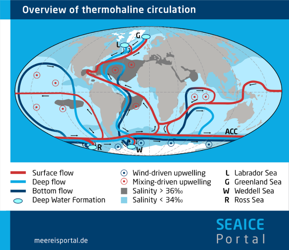 The map below shows The Overview of Thermohaline Circulation.