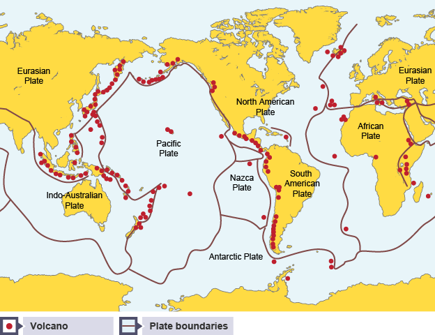Outline one reason why volcanoes are often located near plate boundaries.