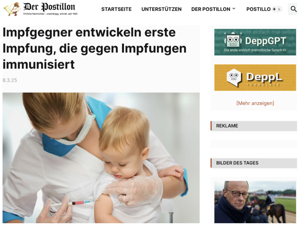 Welche gesellschaftliche Debatte über Impfungen wird hier aufgegriffen, und wie wird sie satirisch zugespitzt?