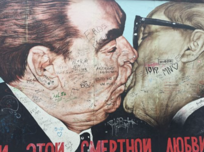 Welche historische Bedeutung hat das Motiv des sozialistischen Bruderkusses in diesem Kunstwerk?