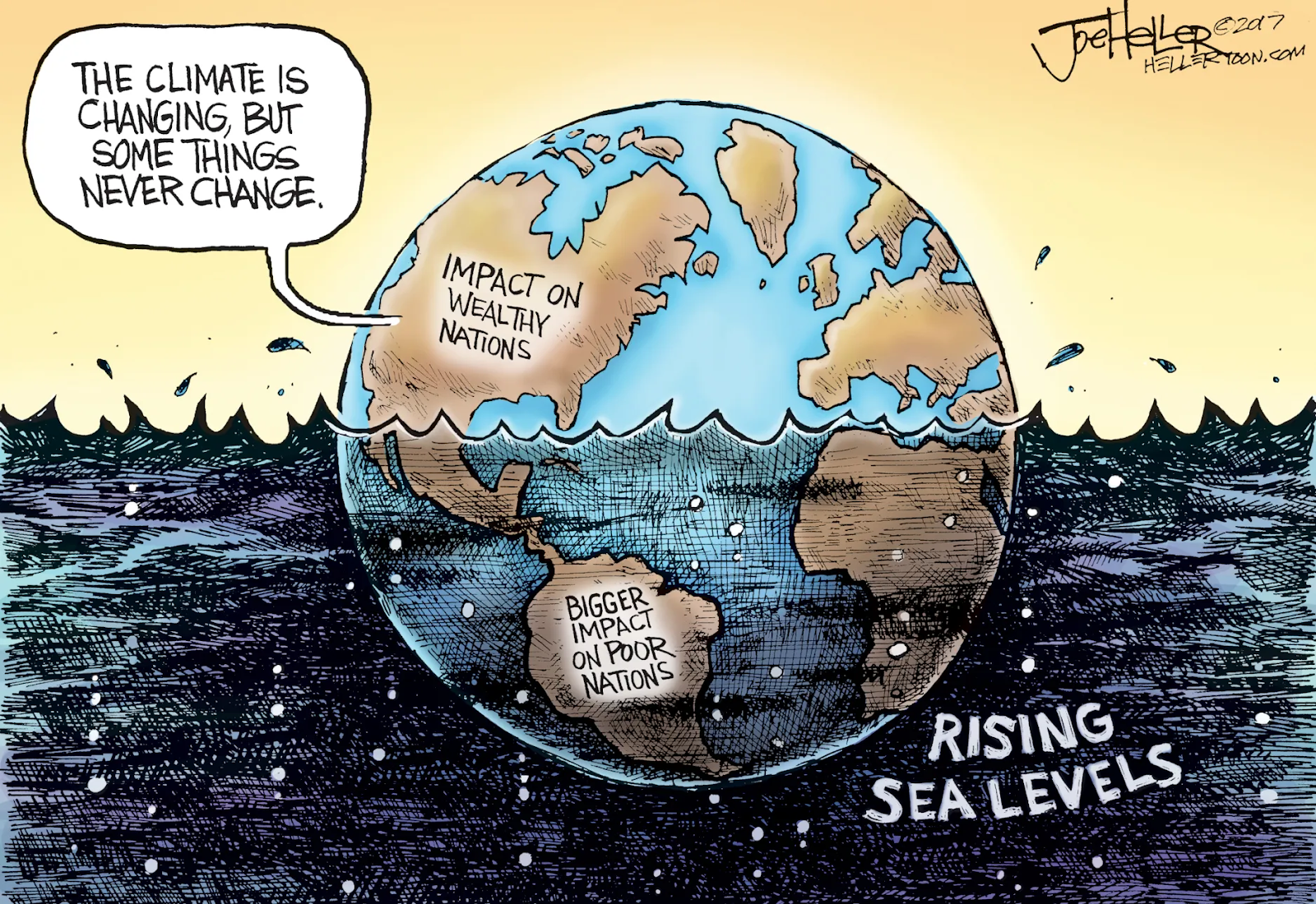 Using Source A, outline three ways in which addressing climate change can also reduce global inequality.