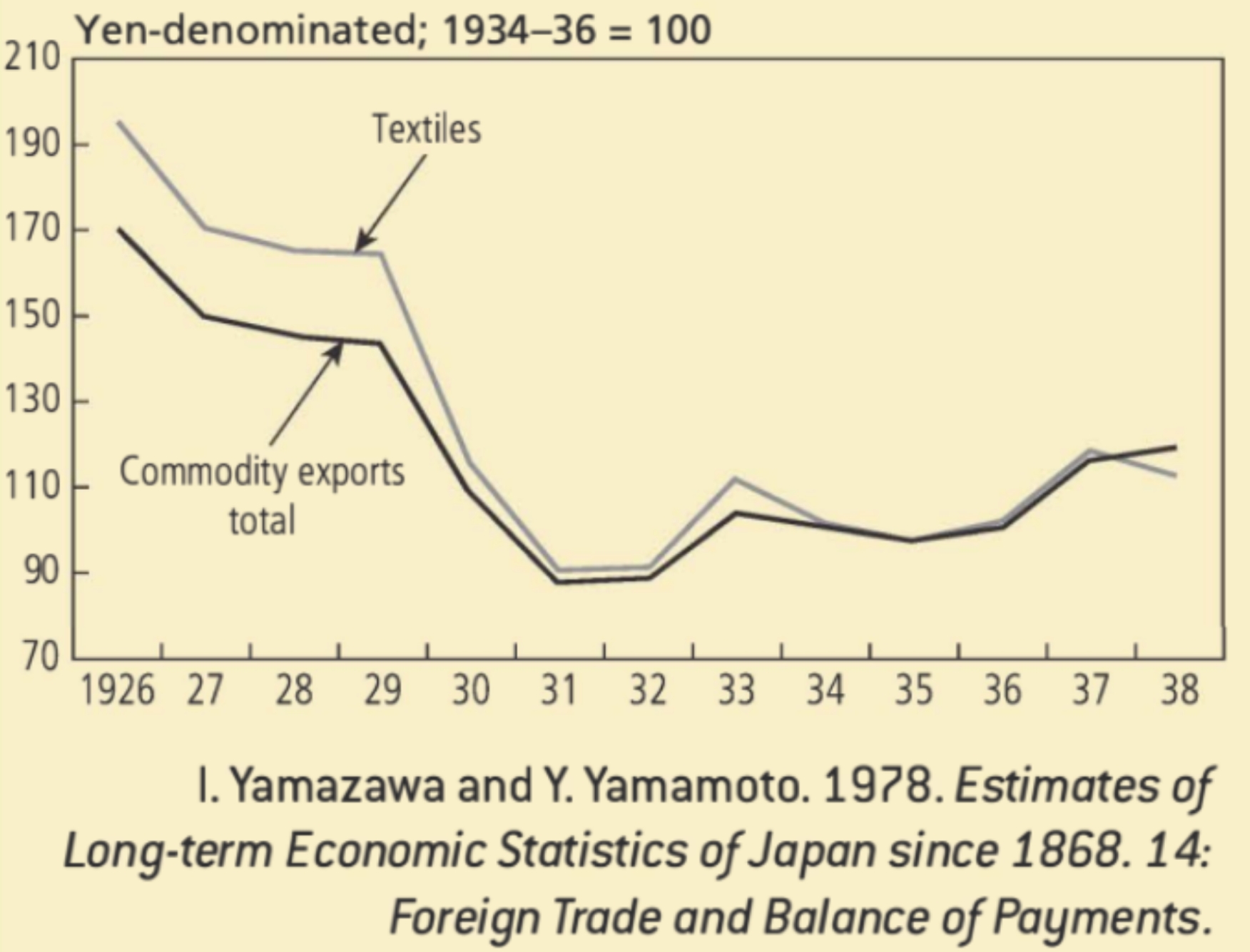 A graph showing Japanese exports 1926-38