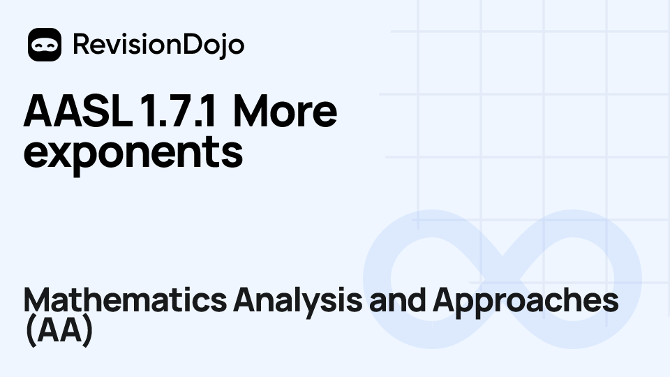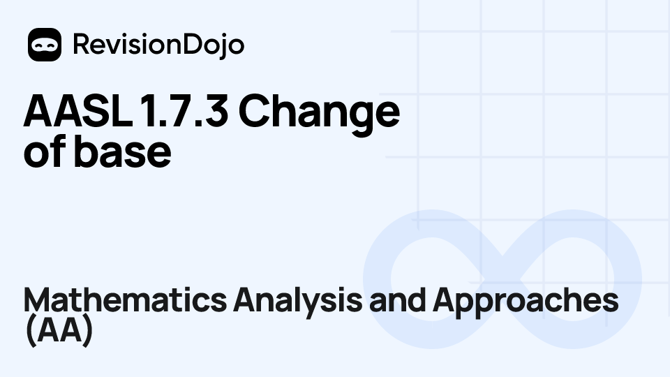 These comprehensive video lessons help IB Mathematics Analysis and Approaches (AA) students Standard Level (SL) and Higher Level (HL) understand and master the essential concepts needed for success in IB Exams. Each video focuses on SL 1.7—Laws of exponents and logs and is aligned with the IB Mathematics Analysis and Approaches (AA) syllabus, ensuring focused learning on functions and equations, calculus, complex numbers, sequences and series, and probability and statistics. Students can watch and rewatch anytime, anywhere, perfect for visual learners, reinforcing complex concepts, and understanding IB methodology. By using RevisionDojo's video lessons consistently, learners build deep understanding and enter the exam with confidence.