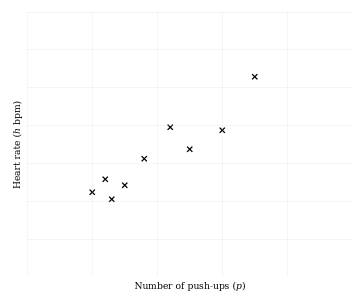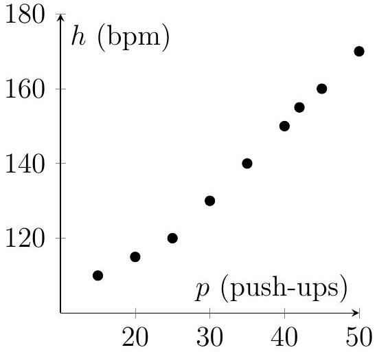 A gym tracks the number of push-ups, , and the heart rate, beats per minute, of nine members after a workout.