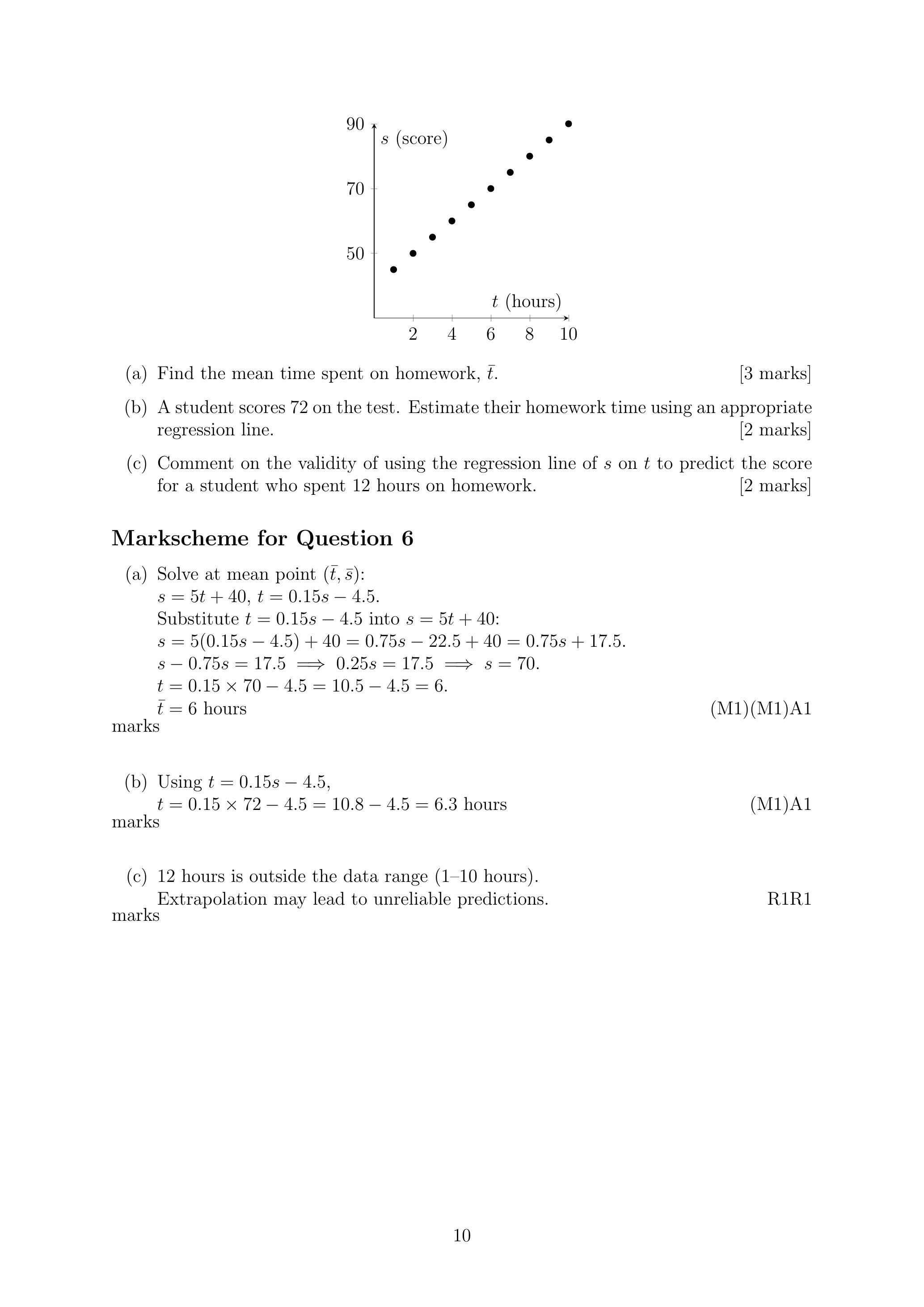 (a) Using technology, find (i) ; (ii) the regression line ; (iii) the regression line . [5]
