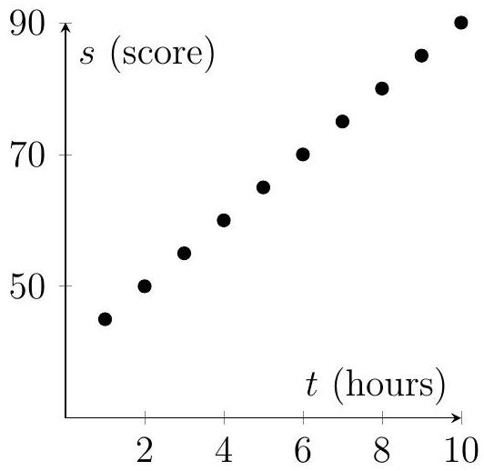 The table below shows the number of hours, , a group of six students spent on homework and their corresponding test scores, , out of 100 .