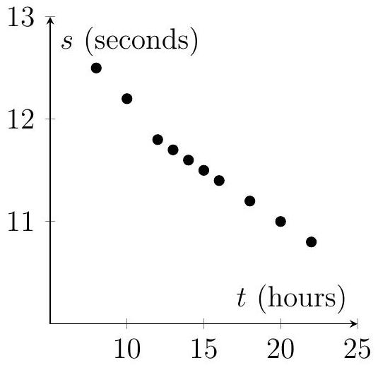 A sports scientist studies the relationship between training hours per week, , and sprint times, seconds, for 10 athletes. The mean point is .
