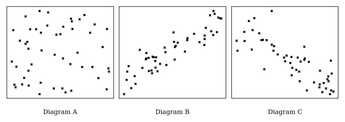 Given correlation coefficients: , assign the appropriate coefficient to each diagram and explain why is rejected.