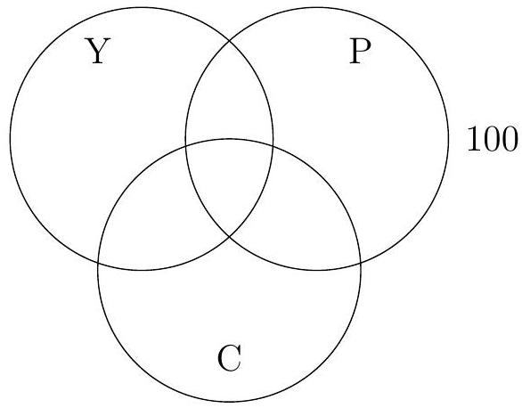 A community center offers three activities: yoga (Y), painting (P), and cooking (C). A survey of 100 members showed the following preferences: