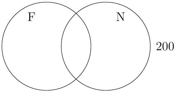 A library tracks borrowing of fiction (F) and non-fiction (N) books by 200 patrons. The probability a patron borrows fiction is , and 80 patrons borrow both types.