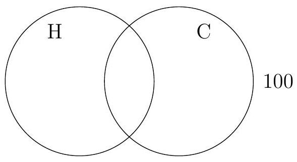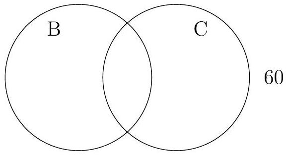 A survey of 60 students at a school shows that 32 take biology (B), 28 take chemistry (C), and 15 take both subjects.