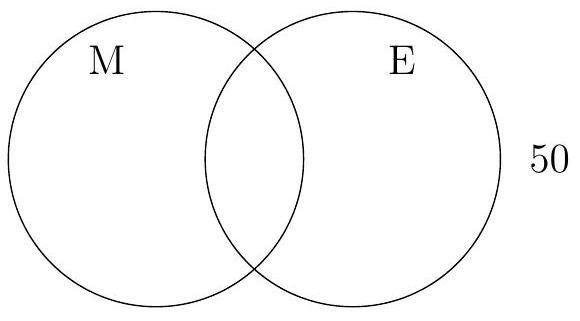 In a group of 50 employees, 30 attend a morning meeting (M), 25 attend an evening meeting (E), and 10 attend both.