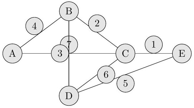 Use Dijkstra's Algorithm to find the shortest path from vertex A to E. Show all steps.