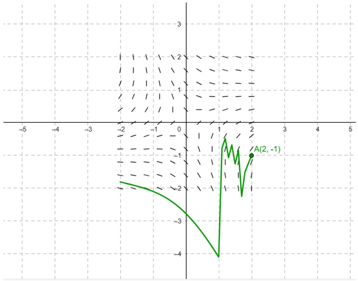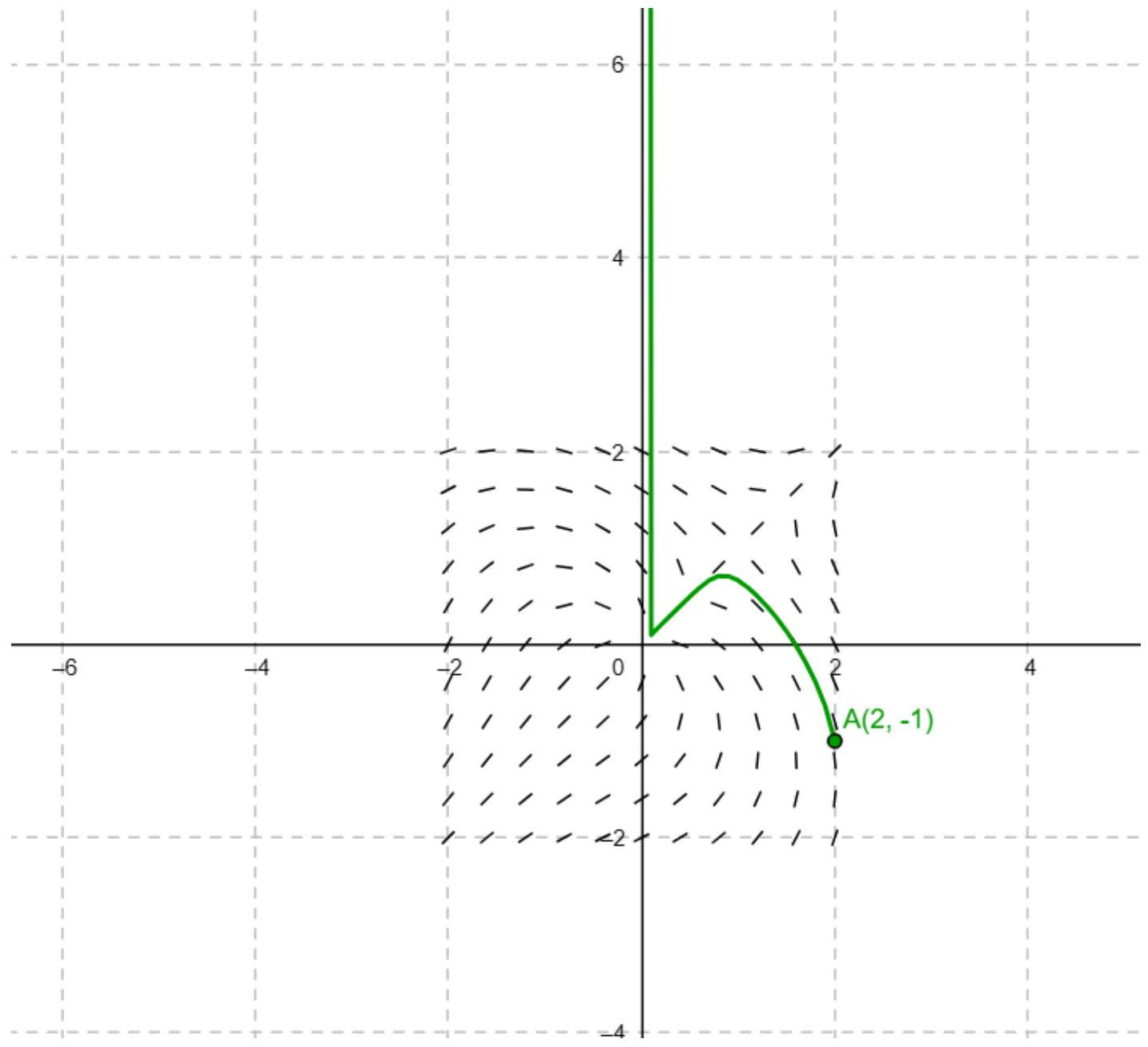 Consider the differential equation , for , excluding . The slope field is shown below.