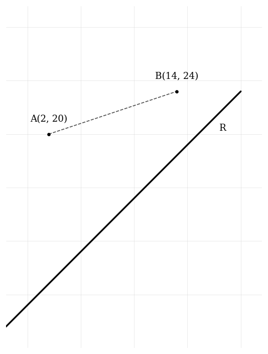 Two schools are represented by points and on the graph below. A road, represented by the line with equation , passes near the schools. An architect is asked to determine the location of a new bus stop on the road such that it is the same distance from the two schools.