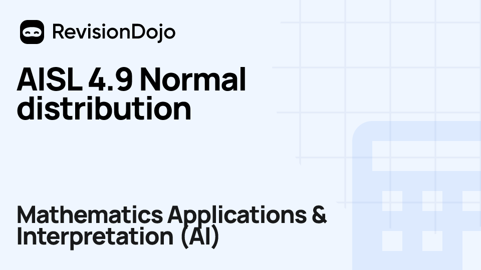 These comprehensive video lessons help IB Mathematics Applications & Interpretation (AI) students Standard Level (SL) and Higher Level (HL) understand and master the essential concepts needed for success in IB Exams. Each video focuses on SL 4.9—Normal distribution and is aligned with the IB Mathematics Applications & Interpretation (AI) syllabus, ensuring focused learning on core principles, advanced applications, and practical problem-solving. Students can watch and rewatch anytime, anywhere, perfect for visual learners, reinforcing complex concepts, and understanding IB methodology. By using RevisionDojo's video lessons consistently, learners build deep understanding and enter the exam with confidence.