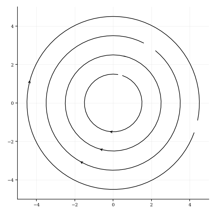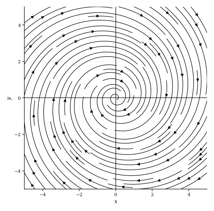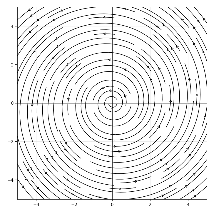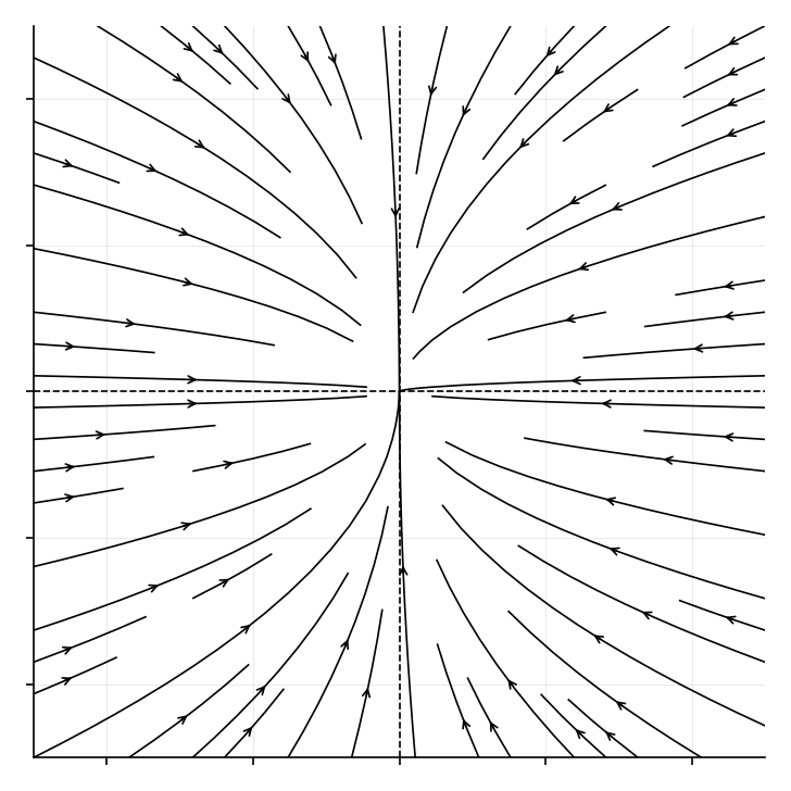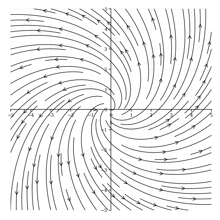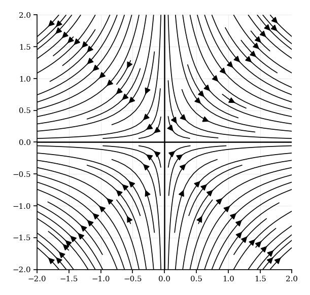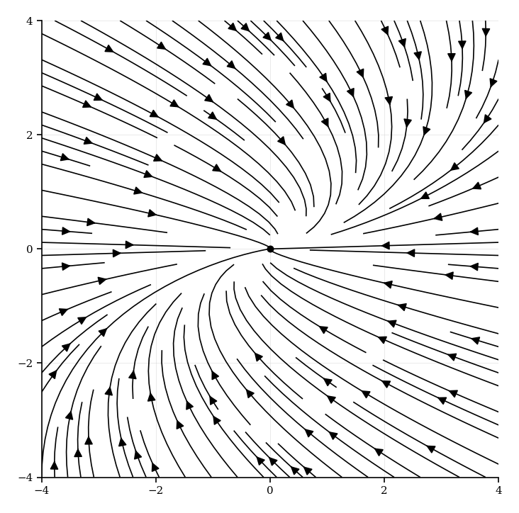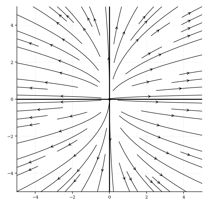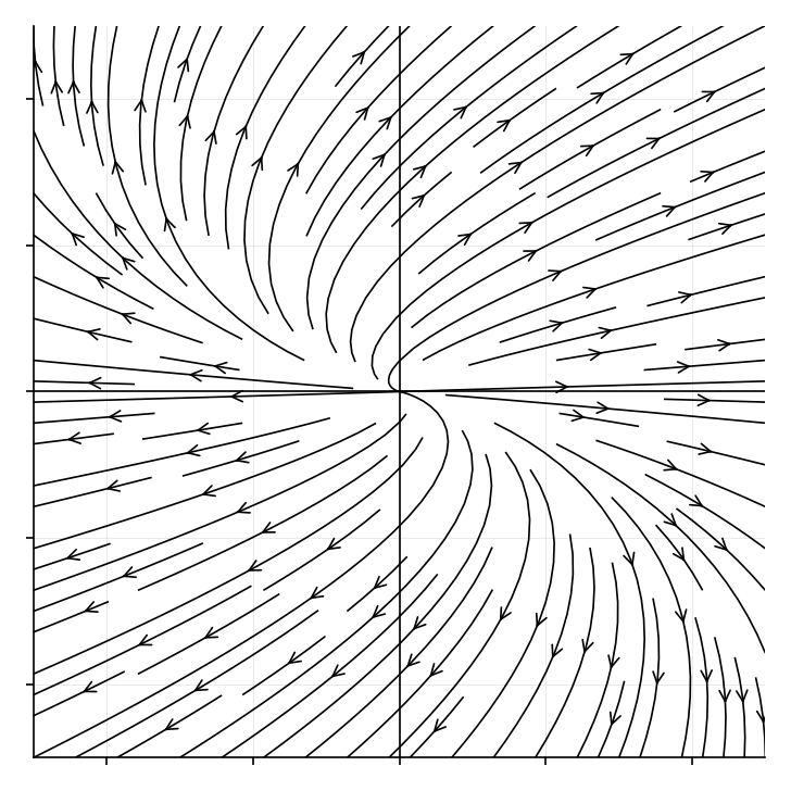 [5]The diagram shows the phase portrait of a linear system of differential equations near the origin.
