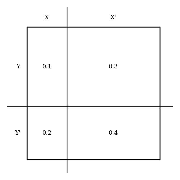 [2]A rectangular probability diagram is partitioned into regions for events and as shown below.