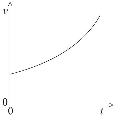 A car accelerates from rest. The acceleration increases with time. Which graph shows the variation with time of the speed of the car?