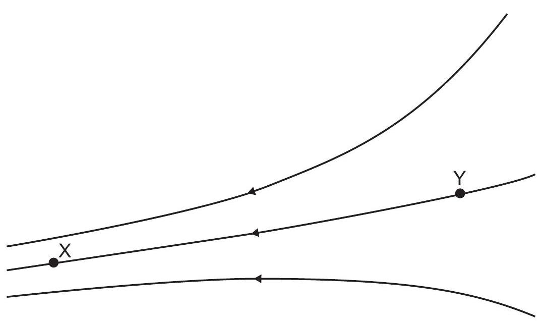 The diagram shows field lines for an electrostatic field. X and Y are two points on the same field line.