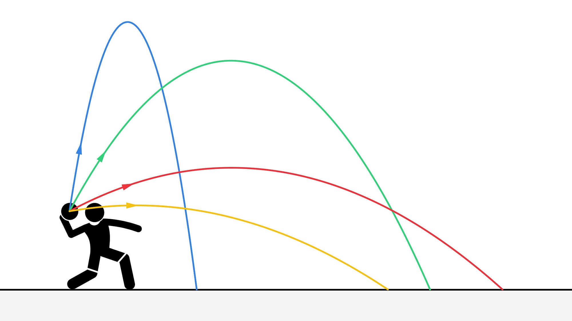- $\theta$ = angle of projection (above the horizontal)